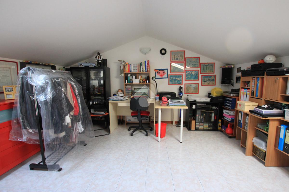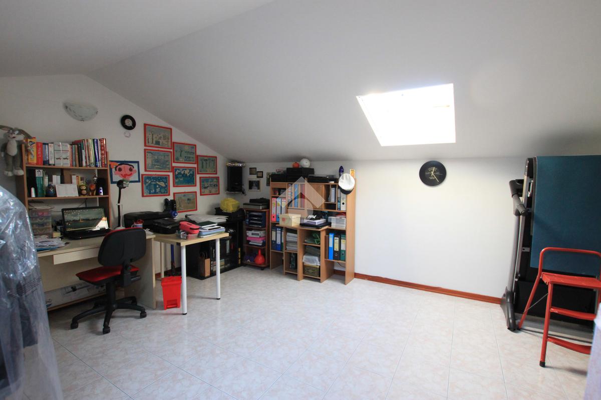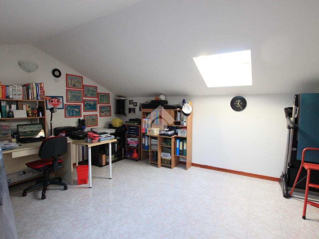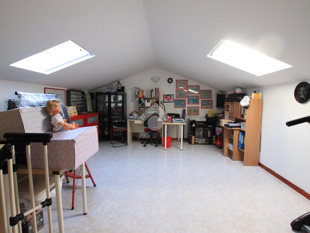 Una porta scorrevole conduce alla zona notte, composta da due camere da letto matrimoniali, di cui una con balcone privato, un bagno di generose dimensioni, un comodo ripostiglio e la scala che porta alla stanza aggiuntiva in mansarda, illuminata da due Velux, ideale come studio, zona hobby o ulteriore spazio versatile.